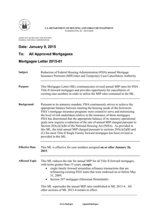 85 Mortgage Insurance Fha Drop January 2015 Obama Pdf